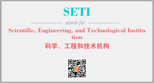上述内容是“Scientific, Engineering, and Technological Institution”作为“SETI”的缩写,解释为“科学、工程和技术机构”时的信息,以及英文缩略词SETI所代表的英文单词,其对应的中文拼音、详细解释以及在英文中的流行度和相关分类、应用领域及应用示例等。