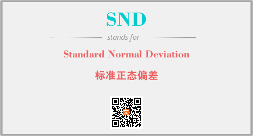 上述内容是“Standard Normal Deviation”作为“SND”的缩写,解释为“标准正态偏差”时的信息,以及英文缩略词SND所代表的英文单词,其对应的中文拼音、详细解释以及在英文中的流行度和相关分类、应用领域及应用示例等。