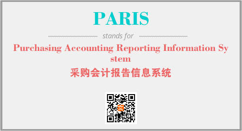 英文缩略词“PARIS”经常作为“Purchasing Accounting Reporting Information System”的英文缩写来使用,中文表示:“采购会计报告信息系统”。本文将详细介绍英文缩写词PARIS所代表英文单词,其对应的中文拼音、详细解释以及在英语中的流行度。此外,还有关于缩略词PARIS的分类、应用领域及相关应用示例等。