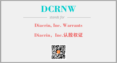 上述内容是“Diacrin, Inc. Warrants”作为“DCRNW”的缩写,解释为“Diacrin,Inc.认股权证”时的信息,以及英文缩略词DCRNW所代表的英文单词,其对应的中文拼音、详细解释以及在英文中的流行度和相关分类、应用领域及应用示例等。