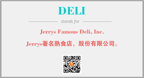 上述内容是“Jerrys Famous Deli, Inc.”作为“DELI”的缩写,解释为“Jerrys著名熟食店,股份有限公司。”时的信息,以及英文缩略词DELI所代表的英文单词,其对应的中文拼音、详细解释以及在英文中的流行度和相关分类、应用领域及应用示例等。