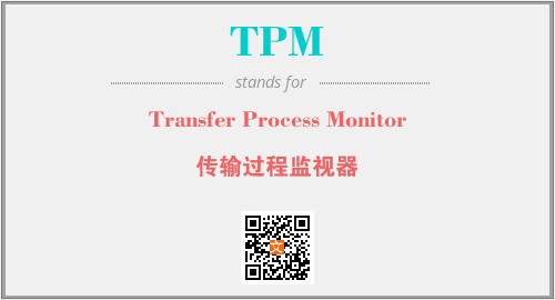 英文缩略词“TPM”经常作为“Transfer Process Monitor”的英文缩写来使用,中文表示:“传输过程监视器”。本文将详细介绍英文缩写词TPM所代表英文单词,其对应的中文拼音、详细解释以及在英语中的流行度。此外,还有关于缩略词TPM的分类、应用领域及相关应用示例等。