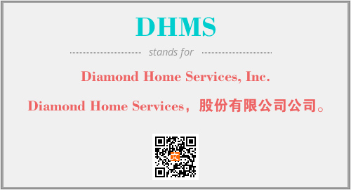 上述内容是“Diamond Home Services, Inc.”作为“DHMS”的缩写,解释为“Diamond Home Services,股份有限公司公司。”时的信息,以及英文缩略词DHMS所代表的英文单词,其对应的中文拼音、详细解释以及在英文中的流行度和相关分类、应用领域及应用示例等。
