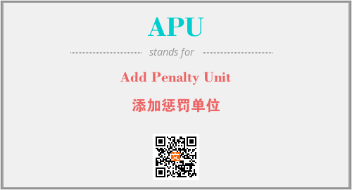 上述内容是“Add Penalty Unit”作为“APU”的缩写,解释为“添加惩罚单位”时的信息,以及英文缩略词APU所代表的英文单词,其对应的中文拼音、详细解释以及在英文中的流行度和相关分类、应用领域及应用示例等。
