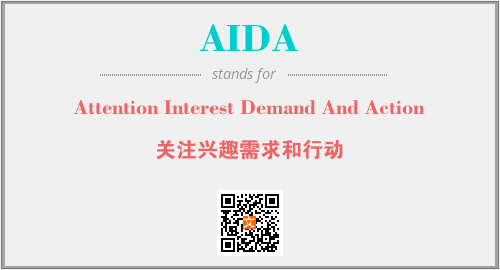 上述内容是“Attention Interest Demand And Action”作为“AIDA”的缩写,解释为“关注兴趣需求和行动”时的信息,以及英文缩略词AIDA所代表的英文单词,其对应的中文拼音、详细解释以及在英文中的流行度和相关分类、应用领域及应用示例等。