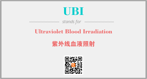 上述内容是“Ultraviolet Blood Irradiation”作为“UBI”的缩写,解释为“紫外线血液照射”时的信息,以及英文缩略词UBI所代表的英文单词,其对应的中文拼音、详细解释以及在英文中的流行度和相关分类、应用领域及应用示例等。