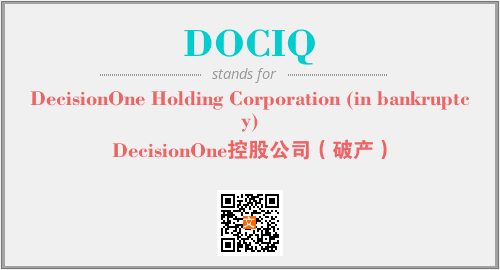 上述内容是“DecisionOne Holding Corporation (in bankruptcy)”作为“DOCIQ”的缩写,解释为“DecisionOne控股公司(破产)”时的信息,以及英文缩略词DOCIQ所代表的英文单词,其对应的中文拼音、详细解释以及在英文中的流行度和相关分类、应用领域及应用示例等。