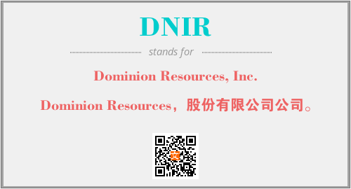 上述内容是“Dominion Resources, Inc.”作为“DNIR”的缩写,解释为“Dominion Resources,股份有限公司公司。”时的信息,以及英文缩略词DNIR所代表的英文单词,其对应的中文拼音、详细解释以及在英文中的流行度和相关分类、应用领域及应用示例等。