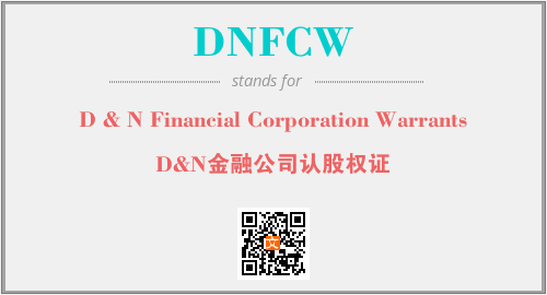 上述内容是“D & N Financial Corporation Warrants”作为“DNFCW”的缩写,解释为“D&N金融公司认股权证”时的信息,以及英文缩略词DNFCW所代表的英文单词,其对应的中文拼音、详细解释以及在英文中的流行度和相关分类、应用领域及应用示例等。