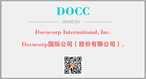 上述内容是“Docucorp International, Inc.”作为“DOCC”的缩写,解释为“Docucorp国际公司(股份有限公司)。”时的信息,以及英文缩略词DOCC所代表的英文单词,其对应的中文拼音、详细解释以及在英文中的流行度和相关分类、应用领域及应用示例等。