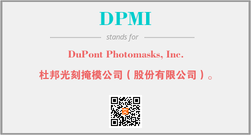 上述内容是“DuPont Photomasks, Inc.”作为“DPMI”的缩写,解释为“杜邦光刻掩模公司(股份有限公司)。”时的信息,以及英文缩略词DPMI所代表的英文单词,其对应的中文拼音、详细解释以及在英文中的流行度和相关分类、应用领域及应用示例等。