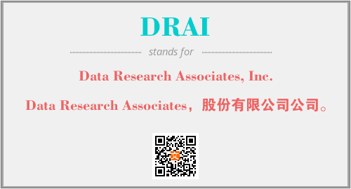 上述内容是“Data Research Associates, Inc.”作为“DRAI”的缩写,解释为“Data Research Associates,股份有限公司公司。”时的信息,以及英文缩略词DRAI所代表的英文单词,其对应的中文拼音、详细解释以及在英文中的流行度和相关分类、应用领域及应用示例等。