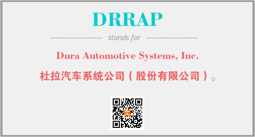 上述内容是“Dura Automotive Systems, Inc.”作为“DRRAP”的缩写,解释为“杜拉汽车系统公司(股份有限公司)。”时的信息,以及英文缩略词DRRAP所代表的英文单词,其对应的中文拼音、详细解释以及在英文中的流行度和相关分类、应用领域及应用示例等。