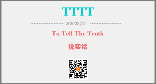 英文缩略词“TTTT”经常作为“To Tell The Truth”的英文缩写来使用,中文表示:“说实话”。本文将详细介绍英文缩写词TTTT所代表英文单词,其对应的中文拼音、详细解释以及在英语中的流行度。此外,还有关于缩略词TTTT的分类、应用领域及相关应用示例等。