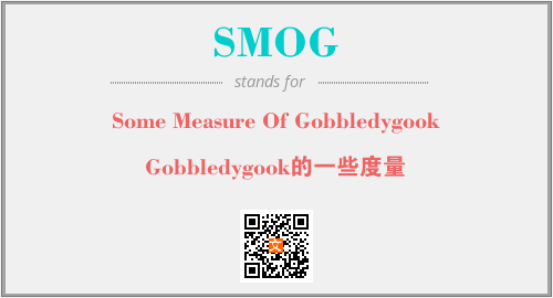 上述内容是“Some Measure Of Gobbledygook”作为“SMOG”的缩写,解释为“Gobbledygook的一些度量”时的信息,以及英文缩略词SMOG所代表的英文单词,其对应的中文拼音、详细解释以及在英文中的流行度和相关分类、应用领域及应用示例等。