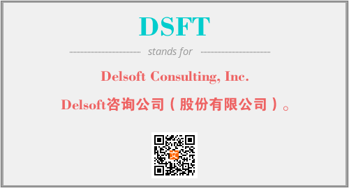 上述内容是“Delsoft Consulting, Inc.”作为“DSFT”的缩写,解释为“Delsoft咨询公司(股份有限公司)。”时的信息,以及英文缩略词DSFT所代表的英文单词,其对应的中文拼音、详细解释以及在英文中的流行度和相关分类、应用领域及应用示例等。