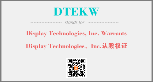 上述内容是“Display Technologies, Inc. Warrants”作为“DTEKW”的缩写,解释为“Display Technologies,Inc.认股权证”时的信息,以及英文缩略词DTEKW所代表的英文单词,其对应的中文拼音、详细解释以及在英文中的流行度和相关分类、应用领域及应用示例等。