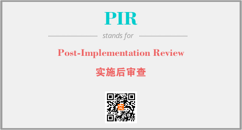 上述内容是“Post-Implementation Review”作为“PIR”的缩写,解释为“实施后审查”时的信息,以及英文缩略词PIR所代表的英文单词,其对应的中文拼音、详细解释以及在英文中的流行度和相关分类、应用领域及应用示例等。