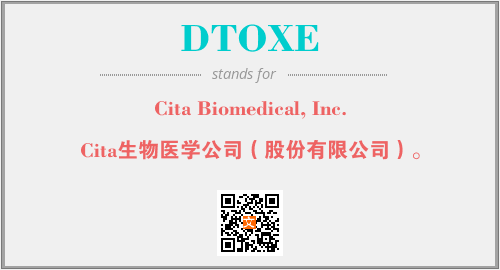 上述内容是“Cita Biomedical, Inc.”作为“DTOXE”的缩写,解释为“Cita生物医学公司(股份有限公司)。”时的信息,以及英文缩略词DTOXE所代表的英文单词,其对应的中文拼音、详细解释以及在英文中的流行度和相关分类、应用领域及应用示例等。
