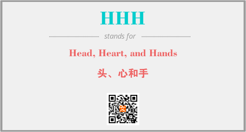 上述内容是“Head, Heart, and Hands”作为“HHH”的缩写,解释为“头、心和手”时的信息,以及英文缩略词HHH所代表的英文单词,其对应的中文拼音、详细解释以及在英文中的流行度和相关分类、应用领域及应用示例等。