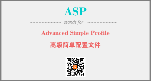 英文缩略词“ASP”经常作为“Advanced Simple Profile”的英文缩写来使用,中文表示:“高级简单配置文件”。本文将详细介绍英文缩写词ASP所代表英文单词,其对应的中文拼音、详细解释以及在英语中的流行度。此外,还有关于缩略词ASP的分类、应用领域及相关应用示例等。