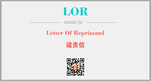 以上为Letter Of Reprimand英文缩略词LOR的中文解释,以及该英文缩写在英语的流行度、分类和应用领域方面的信息。