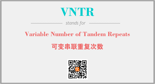 英文缩略词“VNTR”经常作为“Variable Number of Tandem Repeats”的英文缩写来使用,中文表示:“可变串联重复次数”。本文将详细介绍英文缩写词VNTR所代表英文单词,其对应的中文拼音、详细解释以及在英语中的流行度。此外,还有关于缩略词VNTR的分类、应用领域及相关应用示例等。