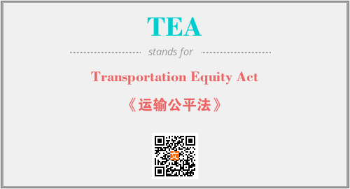以上为Transportation Equity Act英文缩略词TEA的中文解释,以及该英文缩写在英语的流行度、分类和应用领域方面的信息。