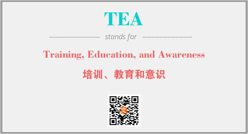上述内容是“Training, Education, and Awareness”作为“TEA”的缩写,解释为“培训、教育和意识”时的信息,以及英文缩略词TEA所代表的英文单词,其对应的中文拼音、详细解释以及在英文中的流行度和相关分类、应用领域及应用示例等。