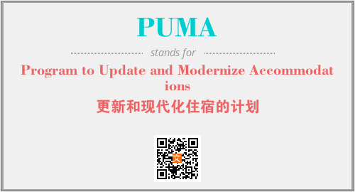 以上为Program to Update and Modernize Accommodations英文缩略词PUMA的中文解释,以及该英文缩写在英语的流行度、分类和应用领域方面的信息。