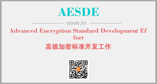 上述内容是“Advanced Encryption Standard Development Effort”作为“AESDE”的缩写,解释为“高级加密标准开发工作”时的信息,以及英文缩略词AESDE所代表的英文单词,其对应的中文拼音、详细解释以及在英文中的流行度和相关分类、应用领域及应用示例等。