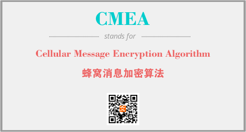英文缩略词“CMEA”经常作为“Cellular Message Encryption Algorithm”的英文缩写来使用,中文表示:“蜂窝消息加密算法”。本文将详细介绍英文缩写词CMEA所代表英文单词,其对应的中文拼音、详细解释以及在英语中的流行度。此外,还有关于缩略词CMEA的分类、应用领域及相关应用示例等。
