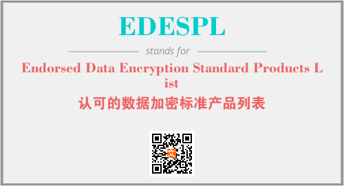 上述内容是“Endorsed Data Encryption Standard Products List”作为“EDESPL”的缩写,解释为“认可的数据加密标准产品列表”时的信息,以及英文缩略词EDESPL所代表的英文单词,其对应的中文拼音、详细解释以及在英文中的流行度和相关分类、应用领域及应用示例等。