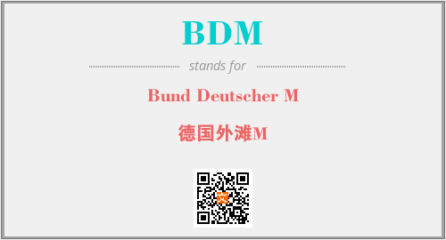 英文缩略词“BDM”经常作为“Bund Deutscher M”的英文缩写来使用,中文表示:“德国外滩M”。本文将详细介绍英文缩写词BDM所代表英文单词,其对应的中文拼音、详细解释以及在英语中的流行度。此外,还有关于缩略词BDM的分类、应用领域及相关应用示例等。