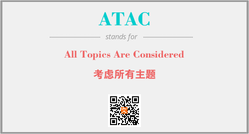 上述内容是“All Topics Are Considered”作为“ATAC”的缩写,解释为“考虑所有主题”时的信息,以及英文缩略词ATAC所代表的英文单词,其对应的中文拼音、详细解释以及在英文中的流行度和相关分类、应用领域及应用示例等。