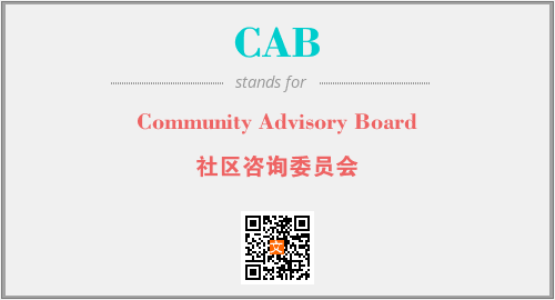 以上为Community Advisory Board英文缩略词CAB的中文解释,以及该英文缩写在英语的流行度、分类和应用领域方面的信息。