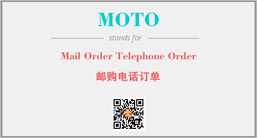 英文缩略词“MOTO”经常作为“Mail Order Telephone Order”的英文缩写来使用,中文表示:“邮购电话订单”。本文将详细介绍英文缩写词MOTO所代表英文单词,其对应的中文拼音、详细解释以及在英语中的流行度。此外,还有关于缩略词MOTO的分类、应用领域及相关应用示例等。