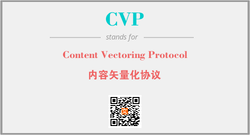 英文缩略词“CVP”经常作为“Content Vectoring Protocol”的英文缩写来使用,中文表示:“内容矢量化协议”。本文将详细介绍英文缩写词CVP所代表英文单词,其对应的中文拼音、详细解释以及在英语中的流行度。此外,还有关于缩略词CVP的分类、应用领域及相关应用示例等。