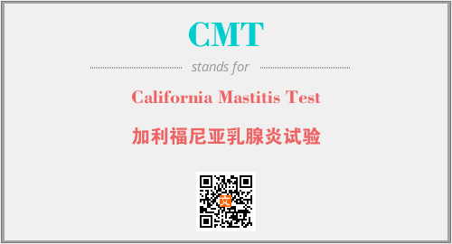 以上为California Mastitis Test英文缩略词CMT的中文解释,以及该英文缩写在英语的流行度、分类和应用领域方面的信息。