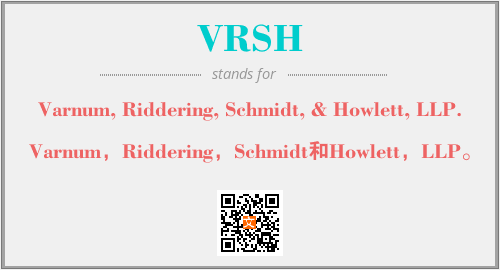 上述内容是“Varnum, Riddering, Schmidt, & Howlett, LLP.”作为“VRSH”的缩写,解释为“Varnum,Riddering,Schmidt和Howlett,LLP。”时的信息,以及英文缩略词VRSH所代表的英文单词,其对应的中文拼音、详细解释以及在英文中的流行度和相关分类、应用领域及应用示例等。