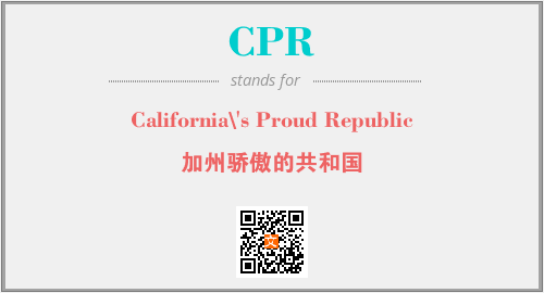 以上为California\'s Proud Republic英文缩略词CPR的中文解释,以及该英文缩写在英语的流行度、分类和应用领域方面的信息。