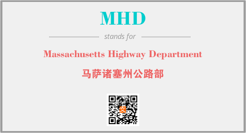 英文缩略词“MHD”经常作为“Massachusetts Highway Department”的英文缩写来使用,中文表示:“马萨诸塞州公路部”。本文将详细介绍英文缩写词MHD所代表英文单词,其对应的中文拼音、详细解释以及在英语中的流行度。此外,还有关于缩略词MHD的分类、应用领域及相关应用示例等。