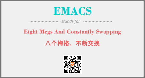 上述内容是“Eight Megs And Constantly Swapping”作为“EMACS”的缩写,解释为“八个梅格,不断交换”时的信息,以及英文缩略词EMACS所代表的英文单词,其对应的中文拼音、详细解释以及在英文中的流行度和相关分类、应用领域及应用示例等。