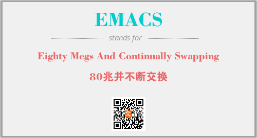 上述内容是“Eighty Megs And Continually Swapping”作为“EMACS”的缩写,解释为“80兆并不断交换”时的信息,以及英文缩略词EMACS所代表的英文单词,其对应的中文拼音、详细解释以及在英文中的流行度和相关分类、应用领域及应用示例等。