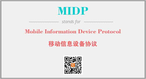 上述内容是“Mobile Information Device Protocol”作为“MIDP”的缩写,解释为“移动信息设备协议”时的信息,以及英文缩略词MIDP所代表的英文单词,其对应的中文拼音、详细解释以及在英文中的流行度和相关分类、应用领域及应用示例等。