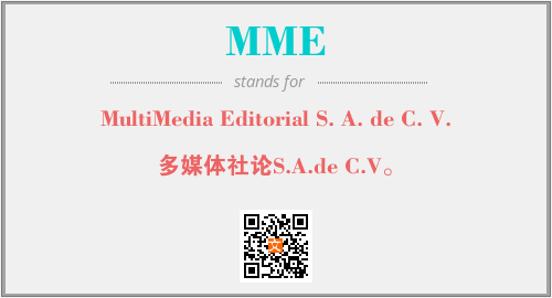 上述内容是“MultiMedia Editorial S. A. de C. V.”作为“MME”的缩写,解释为“多媒体社论S.A.de C.V。”时的信息,以及英文缩略词MME所代表的英文单词,其对应的中文拼音、详细解释以及在英文中的流行度和相关分类、应用领域及应用示例等。