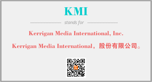 上述内容是“Kerrigan Media International, Inc.”作为“KMI”的缩写,解释为“Kerrigan Media International,股份有限公司。”时的信息,以及英文缩略词KMI所代表的英文单词,其对应的中文拼音、详细解释以及在英文中的流行度和相关分类、应用领域及应用示例等。