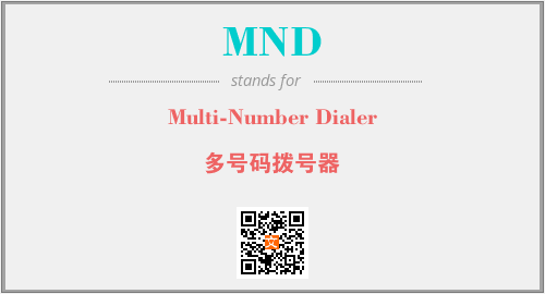 英文缩略词“MND”经常作为“Multi-Number Dialer”的英文缩写来使用,中文表示:“多号码拨号器”。本文将详细介绍英文缩写词MND所代表英文单词,其对应的中文拼音、详细解释以及在英语中的流行度。此外,还有关于缩略词MND的分类、应用领域及相关应用示例等。