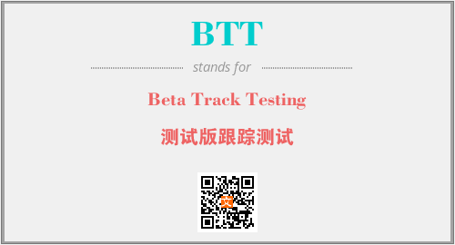 英文缩略词“BTT”经常作为“Beta Track Testing”的英文缩写来使用,中文表示:“测试版跟踪测试”。本文将详细介绍英文缩写词BTT所代表英文单词,其对应的中文拼音、详细解释以及在英语中的流行度。此外,还有关于缩略词BTT的分类、应用领域及相关应用示例等。