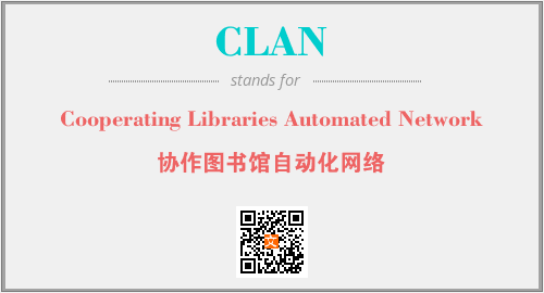 上述内容是“Cooperating Libraries Automated Network”作为“CLAN”的缩写,解释为“协作图书馆自动化网络”时的信息,以及英文缩略词CLAN所代表的英文单词,其对应的中文拼音、详细解释以及在英文中的流行度和相关分类、应用领域及应用示例等。